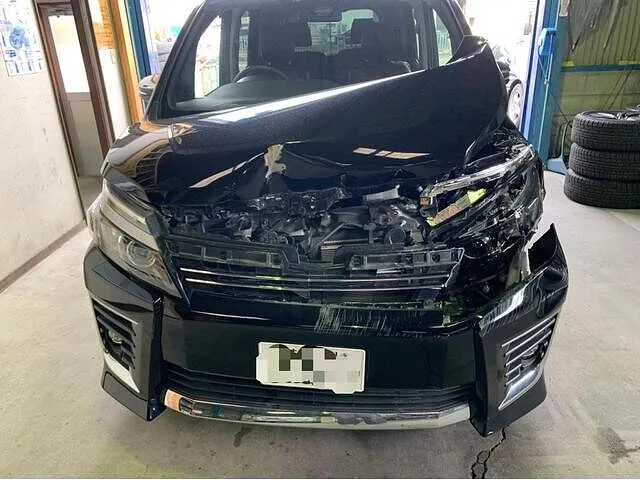 トヨタ ヴォクシーが事故でフロント部分を大きく損傷したため修理致しました。