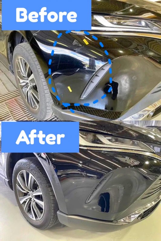 岐阜県羽島郡笠松町|ハリアー(トヨタ)のキズ・へこみ直し事例(フロントバンパー キズ 修理&塗装 細かい小さな傷 安い♬)