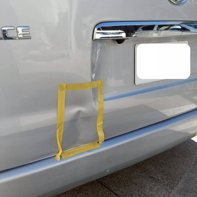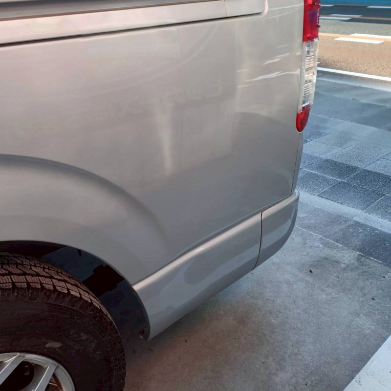 今回は豊田市の【ラピットプロ豊田(カーコンビニ倶楽部)】で、トヨタ・ハイエースワゴンの左右リアフェンダーとハッチバックの自損事故によるへこみを修理しました。損傷はフェンダー両側に深めのへこみ、ハッチバックにも凹みと擦れ傷がありました。ディーラーでは交換や高額修理になることも多い損傷ですが、当店では丁寧な鈑金工程で形状を整え、その後塗装作業に進みます。塗装は車体周囲の色に合わせて調色し、修理跡がわからないように丁寧にぼかしました。樹脂パーツのバンパーも自然に仕上げ、完成後は新車時のような一体感を実現。「ここまで目立たなくなるとは」と大変ご満足いただけました。