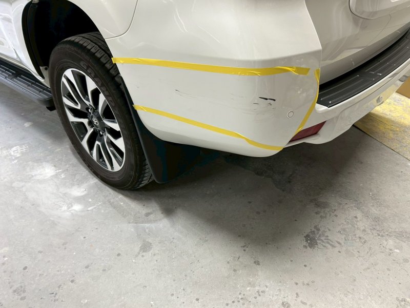 愛知県豊田市|ランドクルーザープラド(トヨタ)のキズ・へこみ直し事例(リアバンパー)