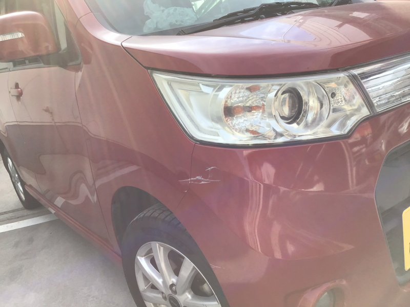 愛知県豊田市|ワゴンR(スズキ)のキズ・へこみ直し事例(右フロントフェンダー、左フロントバンパー)