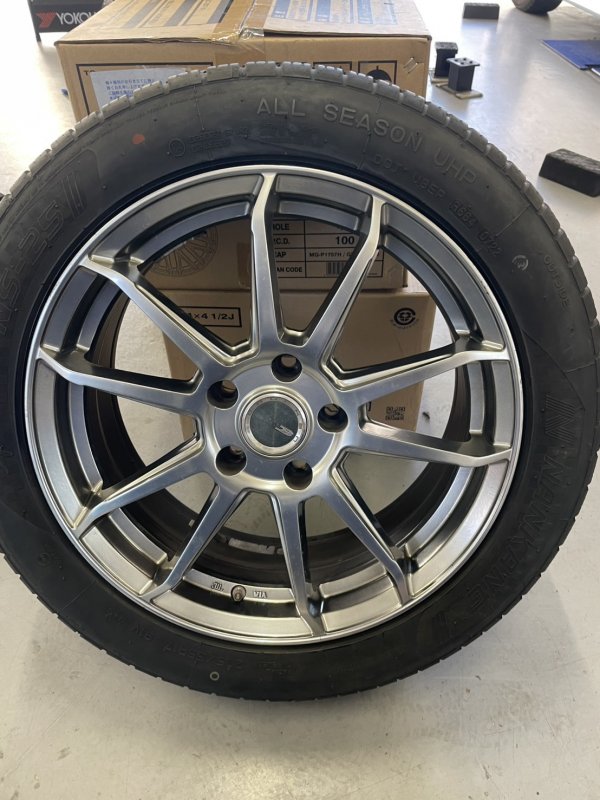 お客様は新品タイヤをお持ち込みいただき、当店で交換作業を行いました。まず古いタイヤを取り外し、ホイールの状態を確認。続いて新品タイヤを装着し、エアバルブも交換して安全性を確保しました。作業後には空気圧を調整し、バランス取りまで丁寧に実施しました。
