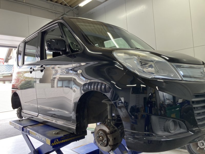 お車はスズキ・ソリオ。お客様より持ち込みタイヤでの交換をご依頼いただきました。日常使いの多いお車だからこそ、タイヤの状態をしっかり整えておくことが安心・安全につながります。