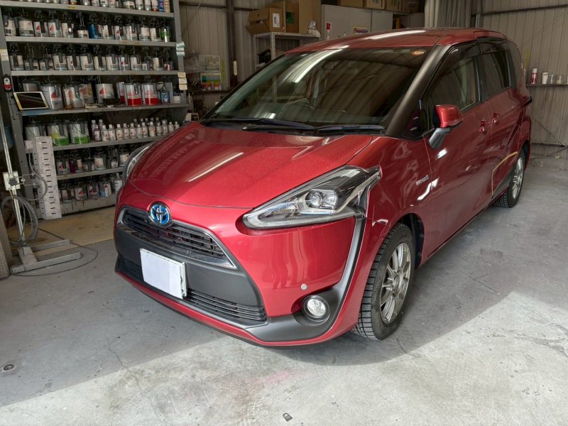 こんにちは、カーコンビニ倶楽部 ラピットプロ豊田です。今回は、トヨタ・スペイドの左フロントバンパーえぐれキズを修理いたしました。駐車時に壁へ接触してしまったとのことで、深めのえぐれがありましたが、交換せず鈑金塗装修理で対応しました。