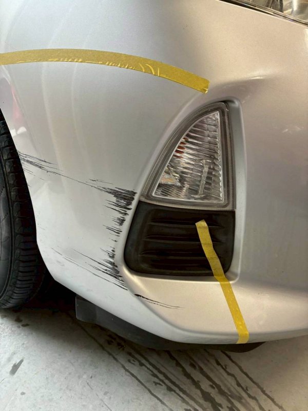 愛知県豊田市|アクア(トヨタ)のキズ・へこみ直し事例(左フロントバンパー)