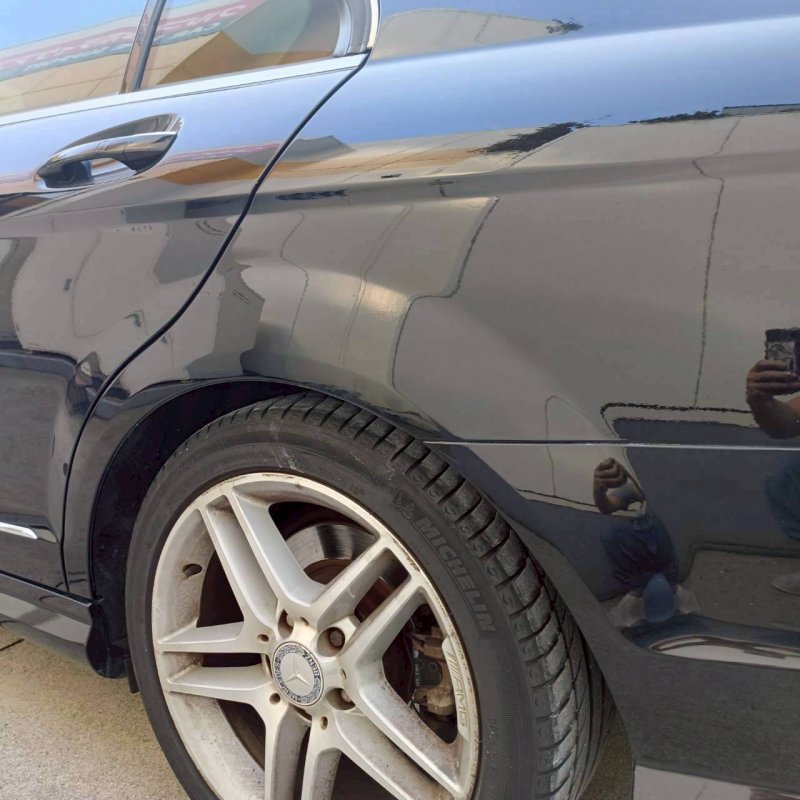 愛知県豊田市|Cクラス(メルセデス・ベンツ)のキズ・へこみ直し事例(左右リアバンパー、左リアフェンダー)