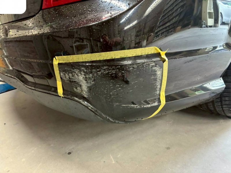 まず損傷を確認すると、左右の樹脂バンパーには深いえぐれ、そして左リアフェンダーにはしっかりとしたへこみがありました。バンパーは形を整える下処理を行い、フェンダーは丁寧に鈑金して元のラインへ復元。その後、現在のお車のボディ周囲の色に合わせて調色し、塗装面を自然にぼかしていくことで、修理箇所がわからない滑らかな仕上がりに。