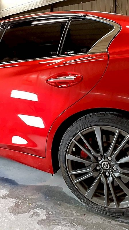 愛知県豊田市|スカイライン(日産)のキズ・へこみ直し事例(左リアドア、左リアフェンダー)