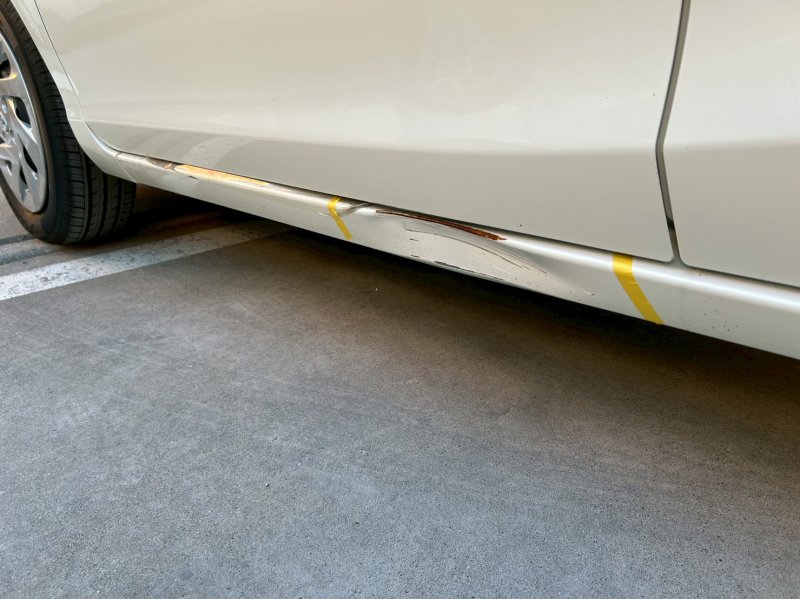 愛知県豊田市|アクア(トヨタ)のキズ・へこみ直し事例(左フロントバンパー、左ステップ)