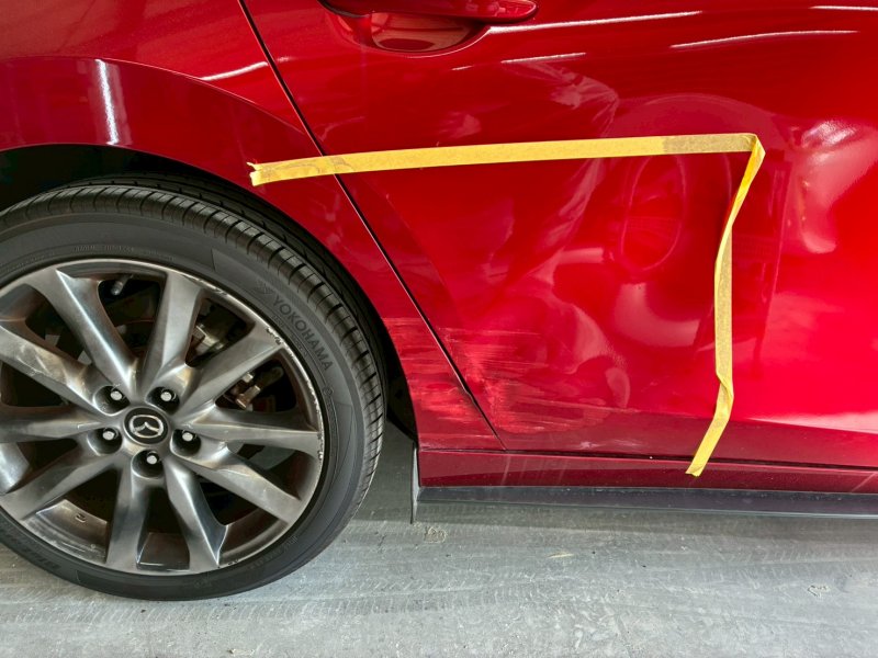 愛知県豊田市|MAZDA3ファストバック(マツダ)のキズ・へこみ直し事例(右リアドア、右リアフェンダー)