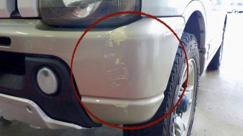静岡県浜松市中央区|ジムニー(スズキ)のキズ・へこみ直し事例(フロントバンパー取り外し、分解、キズ・下地修理、バンパー全体塗装)