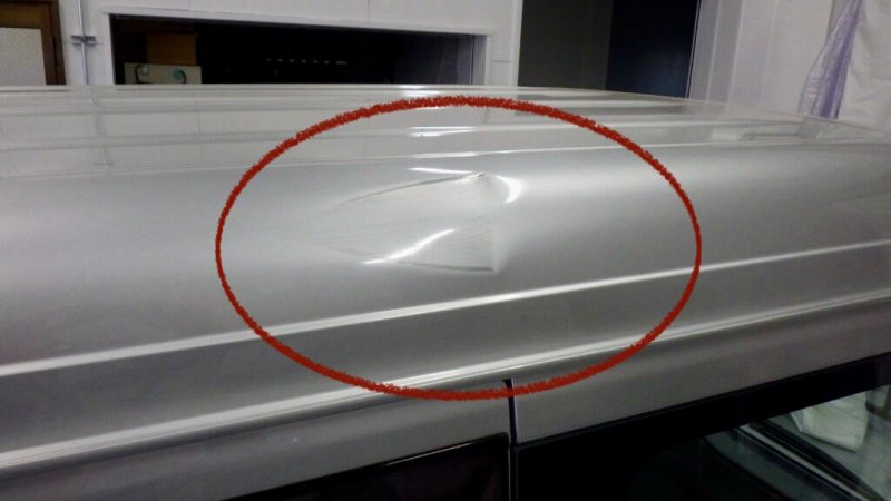 ルーフのヘコミは放置すると塗装の割れからサビが発生することもあります。