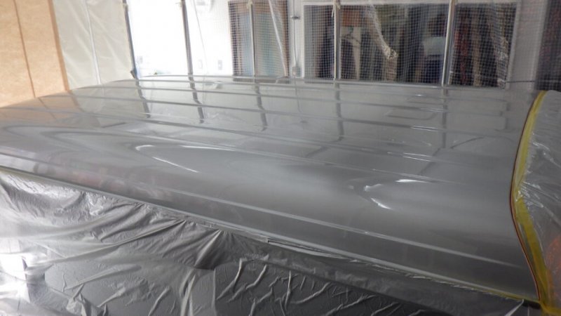 埃を完全にシャットアウトする専用ブースにて、熟練の職人が均一に塗装を施します。面積の広いルーフも、ムラなく新車のようなツヤを取り戻しました!