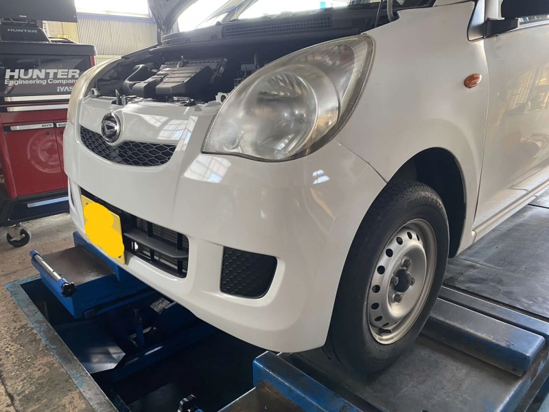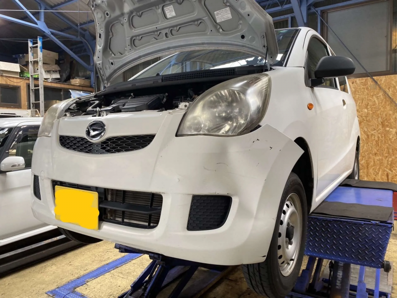 関市にお住まいのK様より、ダイハツ ミラのフロントバンパーのキズへこみ修理のご依頼を受け、当社の鈑金作業先で対応させていただきました。