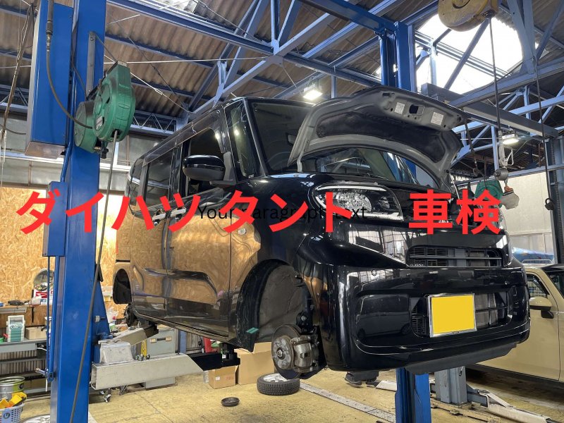 岐阜県関市|タント(ダイハツ)の車検・法定点検事例(カーコン車検 ブレーキパッド交換・スパークプラグ交換・ファンベルト交換)