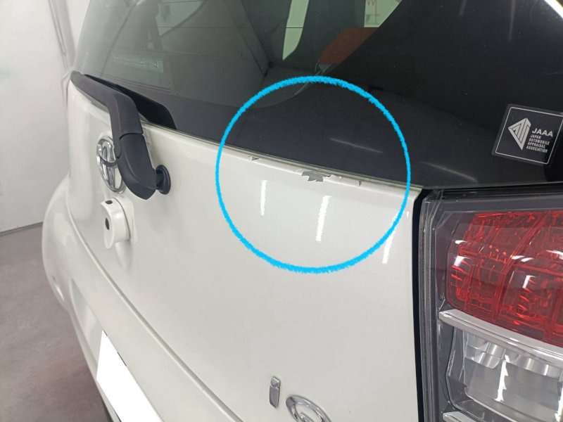愛知県瀬戸市|IQ(トヨタ)のキズ・へこみ直し事例(リアゲート(バックドア) キズ 塗装剝がれ キズ補修 鈑金塗装) 自費修理