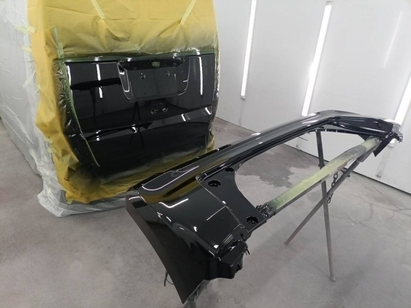 リアゲートの大きなへこみは、職人の技術で丁寧に引き出し、元の形状を正確に復元しました。
