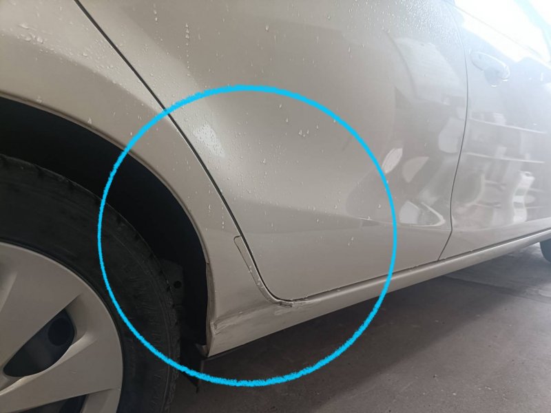 愛知県瀬戸市|アクア(トヨタ)のキズ・へこみ直し事例(右リアドア・右サイドシルのキズ へこみ)