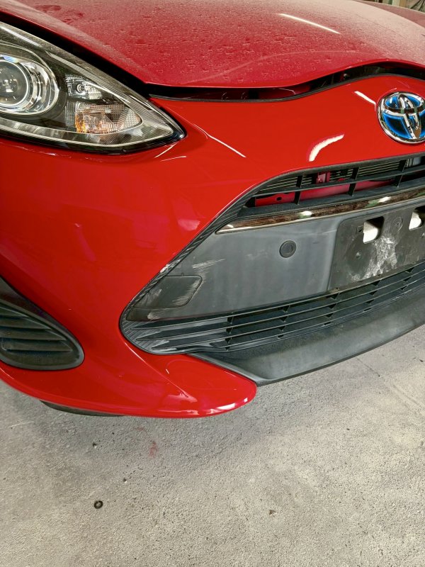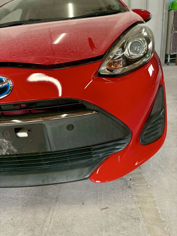 🛠️【施工事例】トヨタ アクア:フロントバンパーのキズ修理(一本塗り)