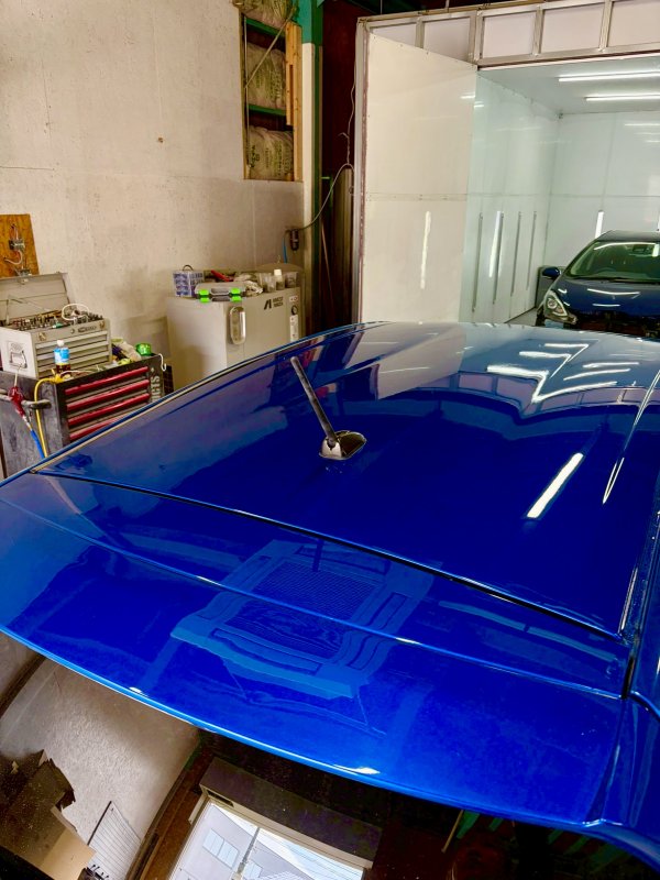ルーフのような広い面の塗装は、ムラが出ないよう均一に仕上げる高度な技術が求められます。また、リアスポイラー等の樹脂パーツも、ボディとの色の差が出ないよう、プロの目できっちりと調色を行いました。