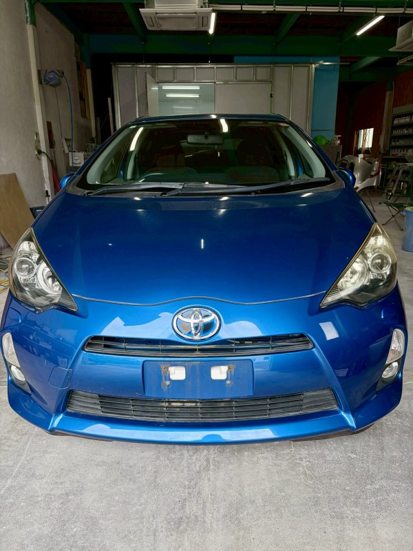 今回は、鮮やかなカラーが目を引くトヨタ アクア(ブルー)の鈑金塗装事例をご紹介いたします。